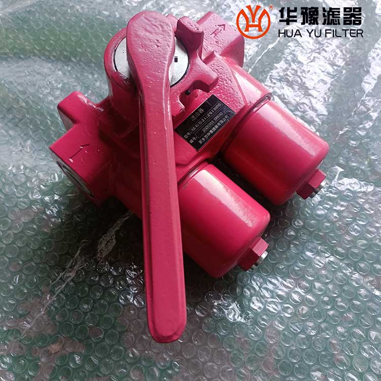 該過濾器是由兩只單筒過濾器、換向閥、旁通閥、發(fā)訊器、擴散器等組成。它被安裝在油箱的頂部,可在形同不停機的情況下更換濾芯,適用于連續(xù)工作的液壓系統(tǒng)回油精過濾,用來濾除液壓系統(tǒng)中諸元件磨損產(chǎn)生的金屬粉末以及密封件的橡膠雜質(zhì)等,使流回油箱的油液保持清潔,以利于系統(tǒng)中的油液循環(huán)使用。