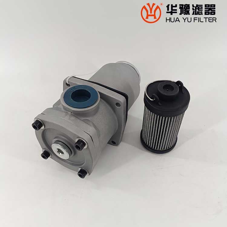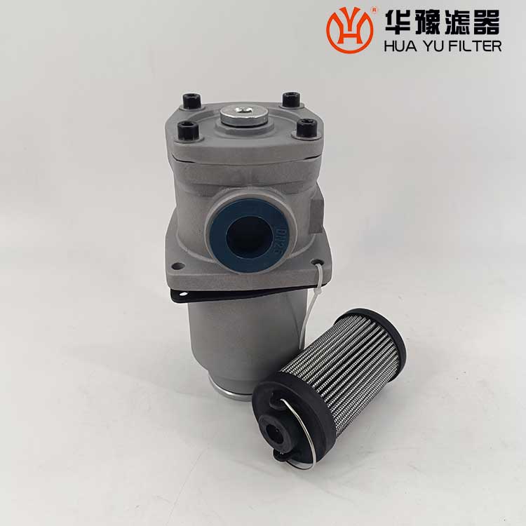 這種過濾器設(shè)有濾芯污染堵塞發(fā)訊器和油路旁通閥,當(dāng)回油壓力達(dá)到0.35MPa時,發(fā)訊器發(fā)出開關(guān)信號或報警,還可直接從發(fā)訊器的表盤上讀出回油壓力值,以提示操作人員及時更換濾芯,保證系統(tǒng)油液的清潔度。更換濾芯只需旋開過濾器端蓋即可。當(dāng)回油壓力上升至0.4MPa時,過濾器內(nèi)的旁通閥便自動卸荷,以避免回油壓力過高造成整個系統(tǒng)工作