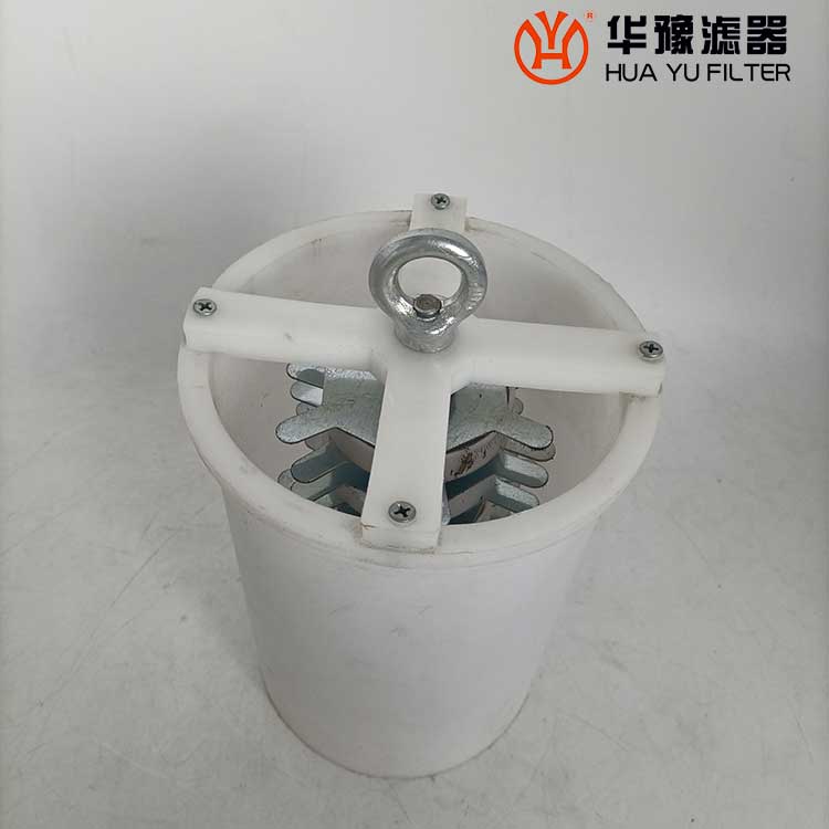 利用潤(rùn)滑油自重狀態(tài)下的流動(dòng),經(jīng)簡(jiǎn)單的網(wǎng)過(guò)濾和磁場(chǎng)吸附,使污垢及時(shí)得以分離,磁網(wǎng)一體化裝置是由圓筒形過(guò)濾網(wǎng)(帶底座)和磁串組成,在潤(rùn)滑油經(jīng)該裝置落入油箱時(shí),油液中直徑大于網(wǎng)目尺寸的污垢和一些鐵質(zhì)微粒就會(huì)被阻擋于裝置內(nèi),從而達(dá)到分離的目的。