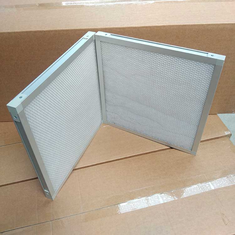 過濾材料是以折疊形式裝入高強度模切硬紙板內(nèi),迎風面積增大。流入的空氣中的塵埃粒子被過濾材料有效阻擋在褶與褶之間。潔凈空氣從另一面均勻流出,因此氣流通過過濾器是平緩和均勻的。視過濾材料不同,它所阻擋的粒徑從0.5μm到5μm而不同,過濾效率也不同 。