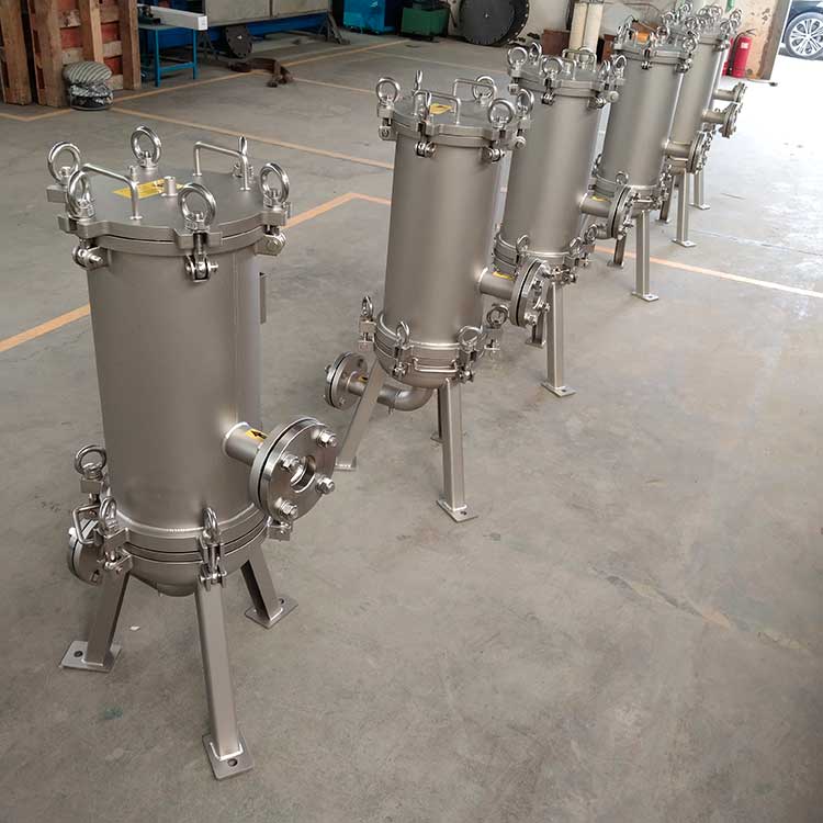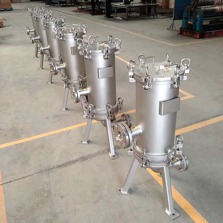 精密過濾器(又稱作保安過濾器),筒體外殼一般采用不銹鋼材質(zhì)制造,內(nèi)部采用PP熔噴、線燒、折疊、鈦濾芯、活性炭濾芯等管狀濾芯作為過濾元件,根據(jù)不同的過濾介質(zhì)及設(shè)計工藝選擇不同的過濾元件,以達(dá)到出水水質(zhì)的要求。